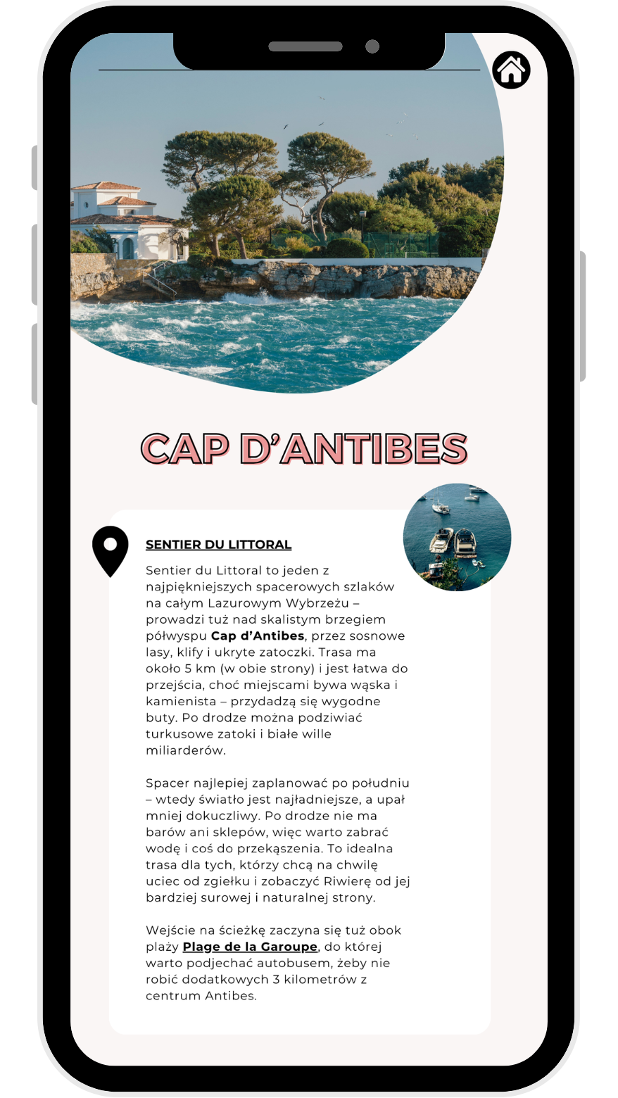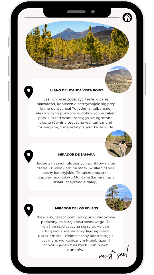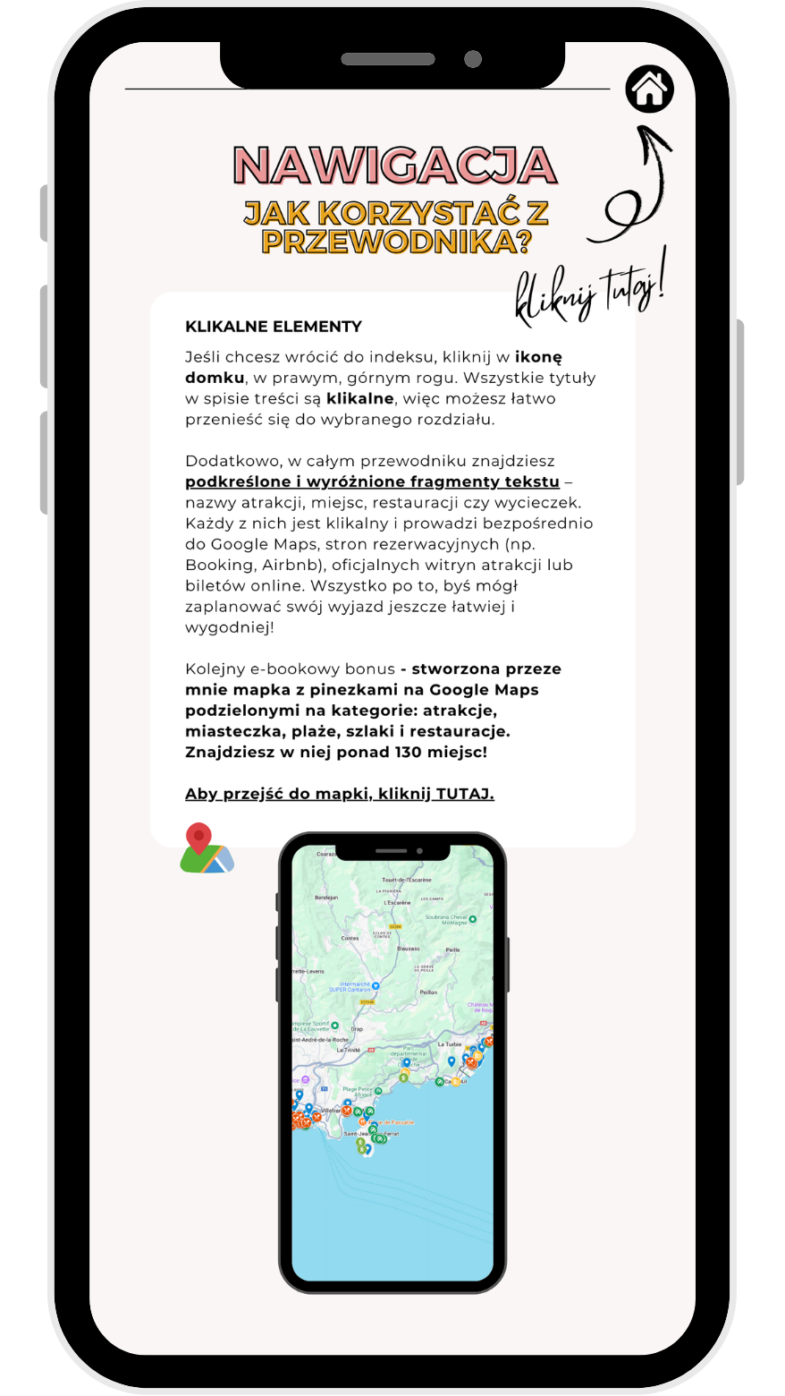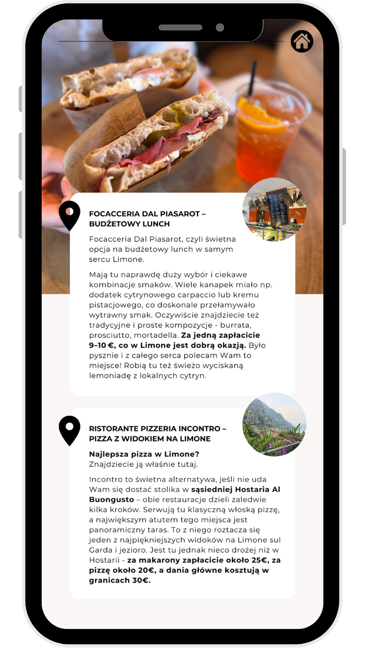 • ✔️ Interaktywną mapkę z pinezkami (atrakcje, plaże, jedzenie, miasteczka)