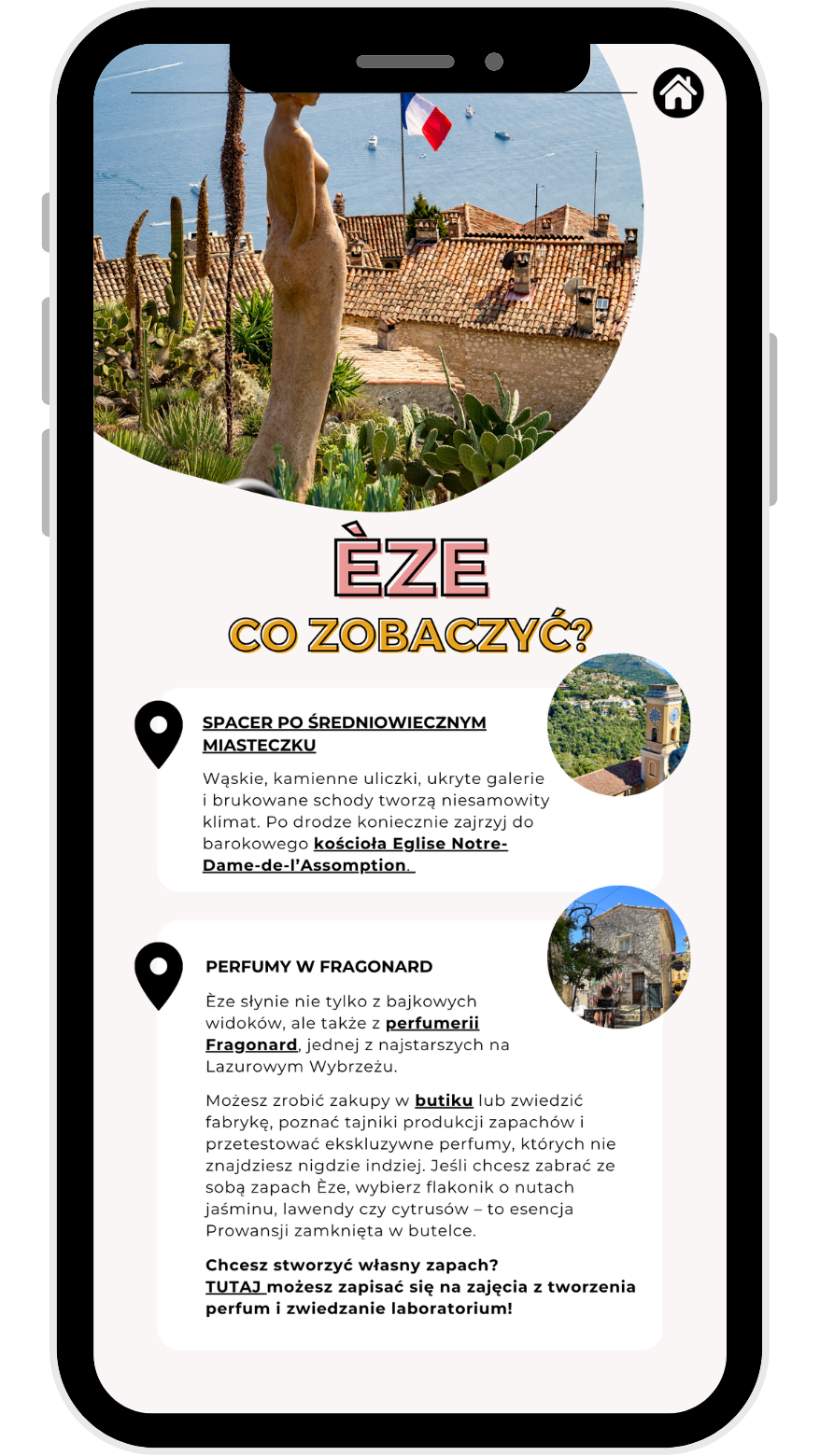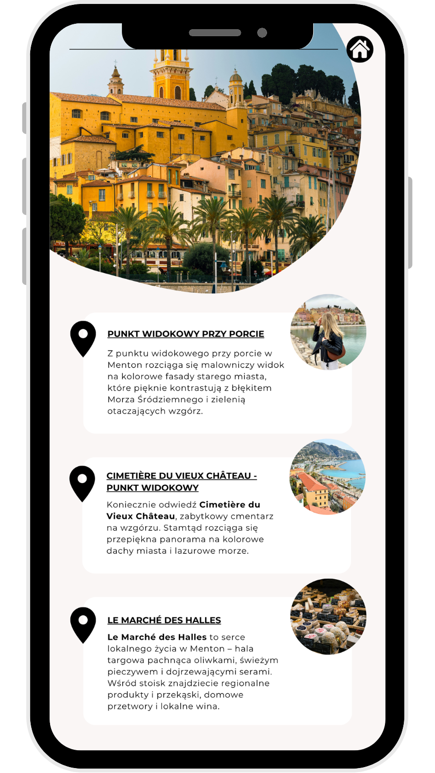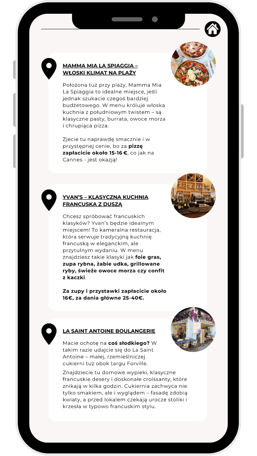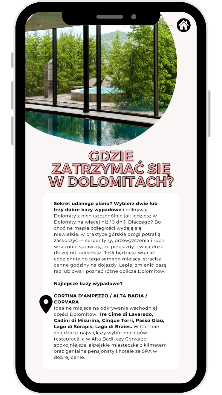• ✔️ Interaktywną mapkę z pinezkami (atrakcje, plaże, jedzenie, miasteczka)