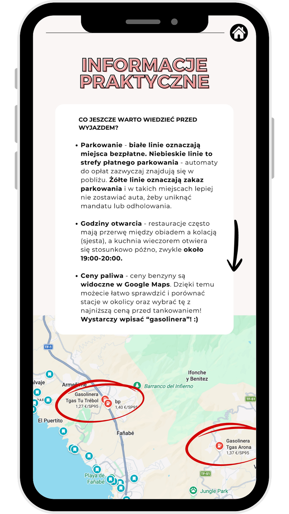 Aż 135 stron praktycznych wskazówek i sprawdzonych miejsc, które pomogą Ci zorganizować wymarzoną podróż krok po kroku – bez godzin spędzonych na planowaniu. W środku znajdziesz gotowy plan podróży na 10 dni, szczegółowe opisy najpiękniejszych miejsc na północy i południu wyspy, dzikich plaż, punktów widokowych, szlaków, miasteczek, restauracji i atrakcji – wszystko uporządkowane dzień po dniu. Dodatkowo otrzymasz praktyczne informacje dotyczące lotów, wynajmu auta, parkingów, organizacji podróży, polecenia wyjątkowych noclegów oraz nasze sprawdzone tipy z podróży. Do przewodnika dołączona jest interaktywna mapa Google Maps z aż 180 pinezkami, podzielonymi na kategorie. Wszystko w jednej, wygodnej formie – idealnej na telefon.