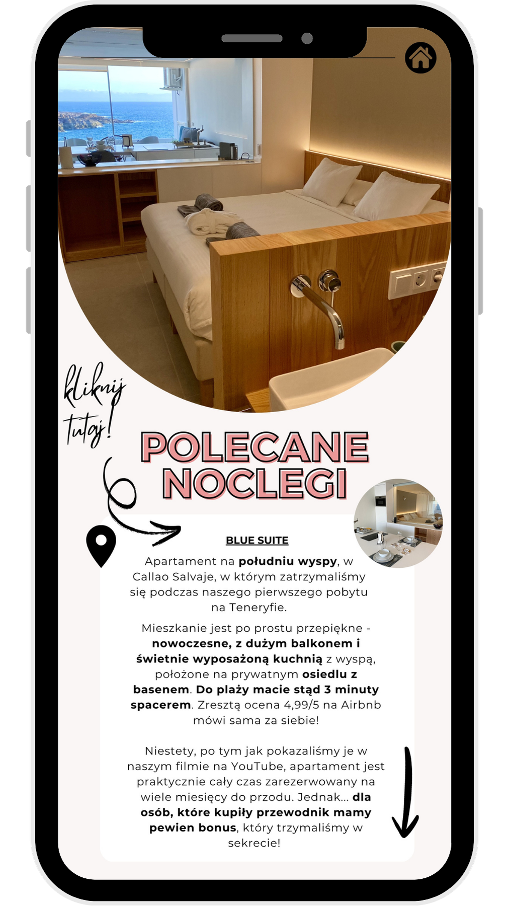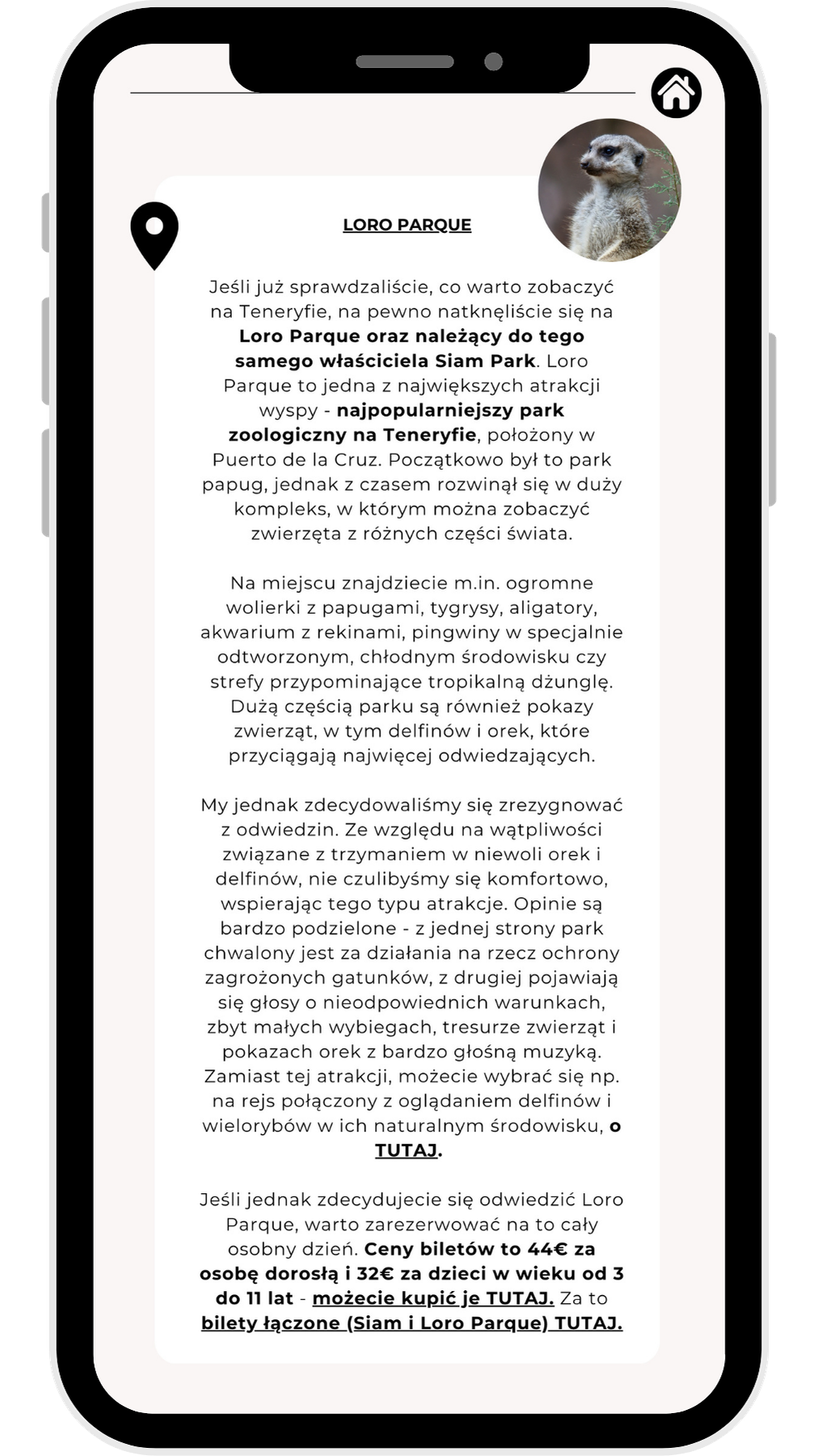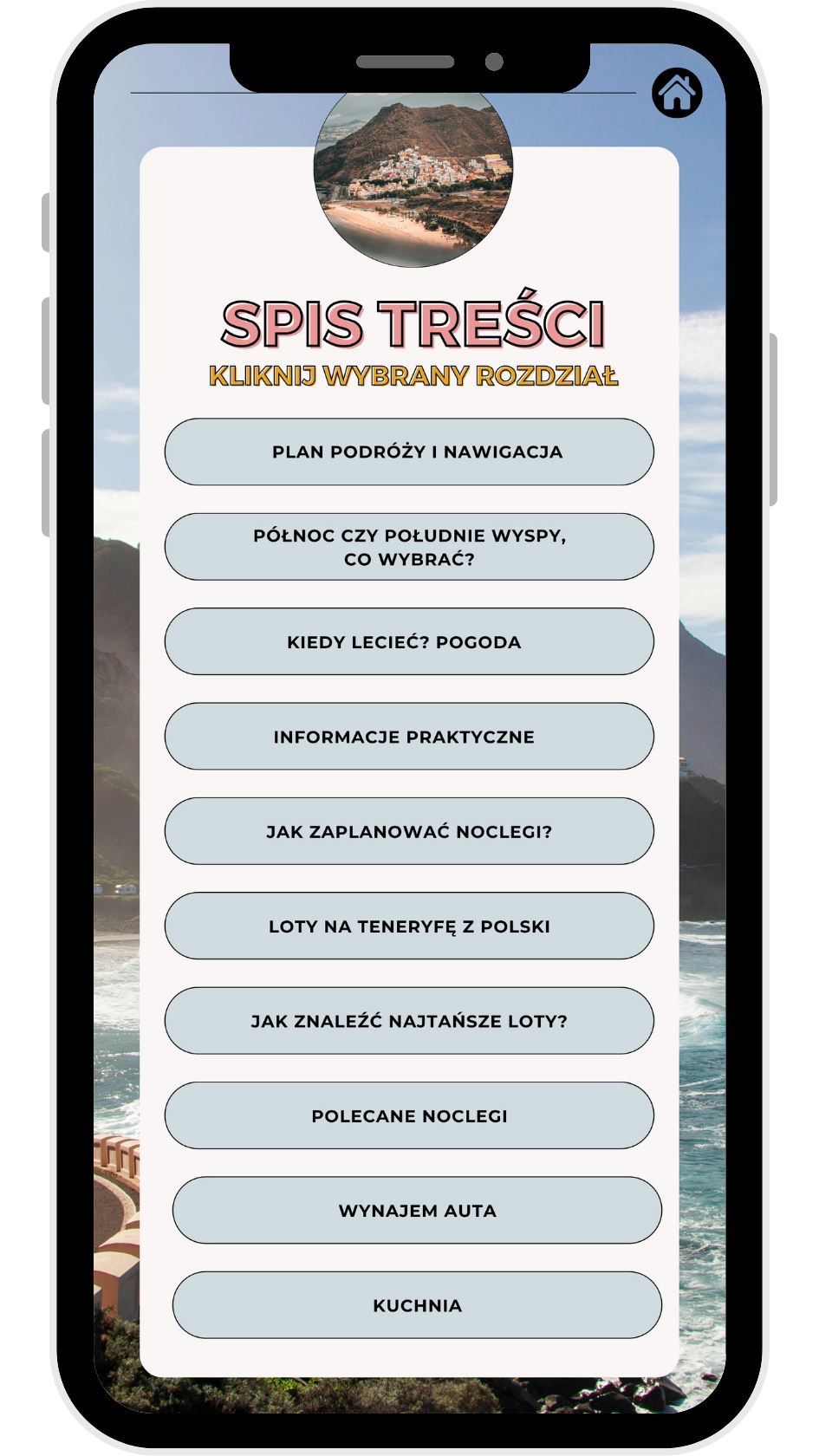 E-book został zaprojektowany z myślą o wygodzie użytkowania: posiada klikalne rozdziały i podrozdziałyikonę domku na każdej stronie do szybkiego powrotu do spisu treści oraz aktywną mapkę Google Maps z atrakcjami, plażami i miasteczkami. Dodatkowo zawiera bezpośrednie linki do stron atrakcji, biletów i noclegów.